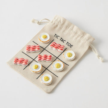 The Pilbeam Living Eggs & Bacon Tic Tac Toe serves up a fun, breakfast-inspired take on the classic game. Featuring five egg and four bacon pieces, the set includes a printed drawstring bag that doubles as the game board and also keeps all the pieces neatly stored. The player with the five eggs makes the first move, but with only nine spaces, it’s still anyone’s game to win. A playful piece that’s perfect for gifting, coffee tables, or embracing a touch of kidulting fun at home.
