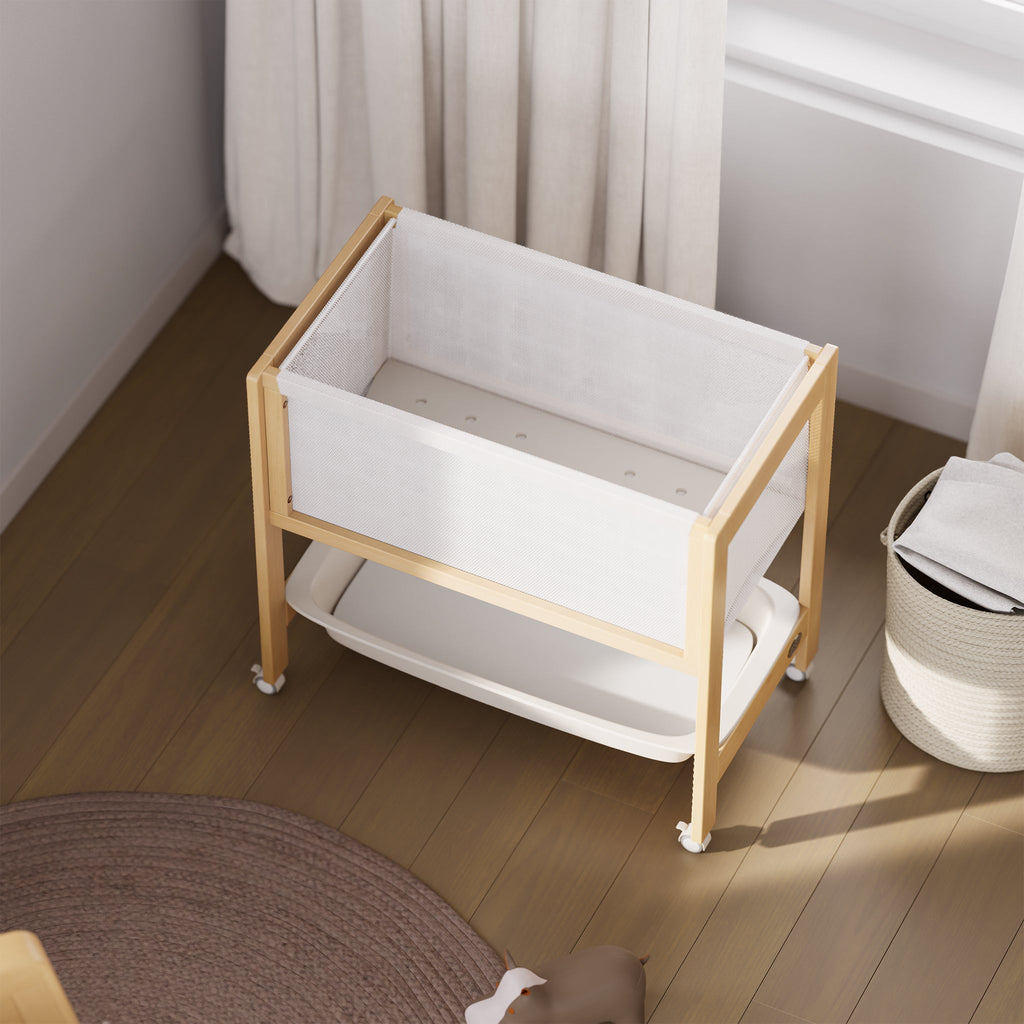 For parents who appreciate mobility, the bassinet comes equipped with durable wheels, making it easy to move around the home. Whether it's transitioning from the bedroom to the living room or any other space, the bassinet's mobility is a key feature.