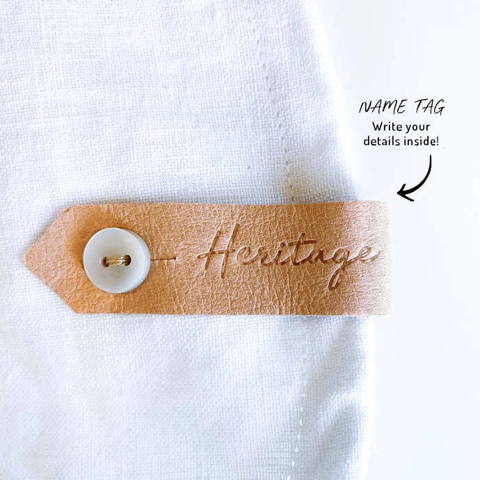 - Beautiful button-up leather 'Return to' label for names to help hats get home safely.