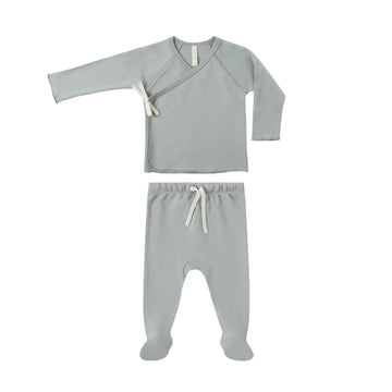 Wrap Top + Footed Pant Set | Steel Blue | Quincy Mae